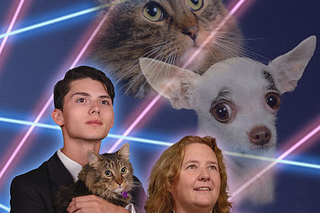 4. But the school’s principal, Diane Wilkinson, and her Chihuahua Vivienne joined Rodriguez for an epic new laser cat yearbook photo.