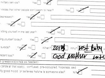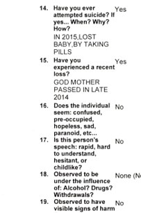 2. Why do her booking documents appear to have contradicting details about a possible suicide attempt?