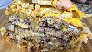 Pop that sucker in the oven. After it's gotten all crispy, pull it out, cover it in American cheese and more french fries.
