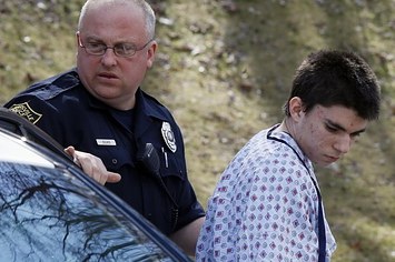 Alex Hribal, the suspect in the multiple stabbings at the Franklin Regional High School in Murrysville, Penn., is escorted by police to a district magistrate to be arraigned on Wednesday, April 9, in Export, Penn. AP Photo/Keith Srakocic