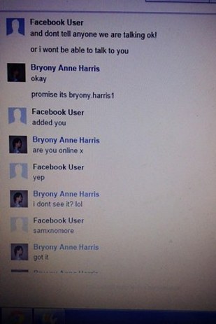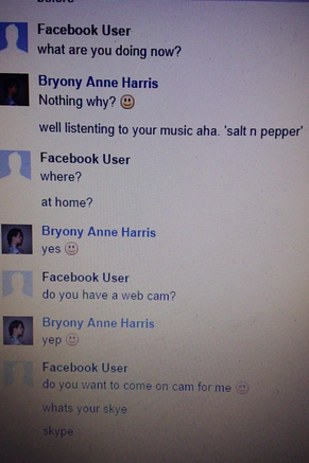 Also on Tuesday, Bryony Harris, 19, tweeted what she said were screenshots of Facebook chats she had with Pepper when she was 15.
