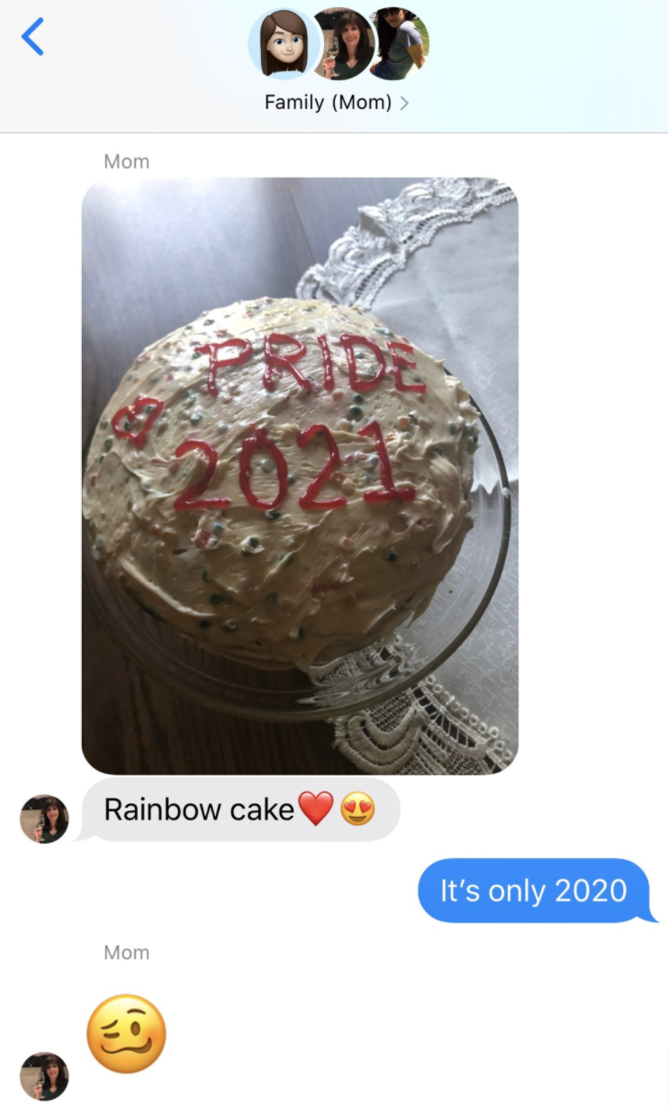My mom said “gay rights!” but also forgot what year it is.