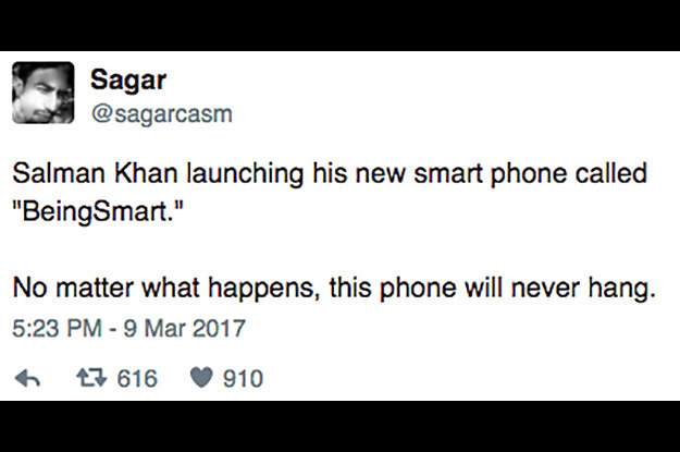 Irony is salman khan coming up with a phone named #BeingSmart