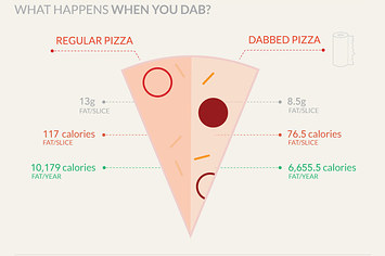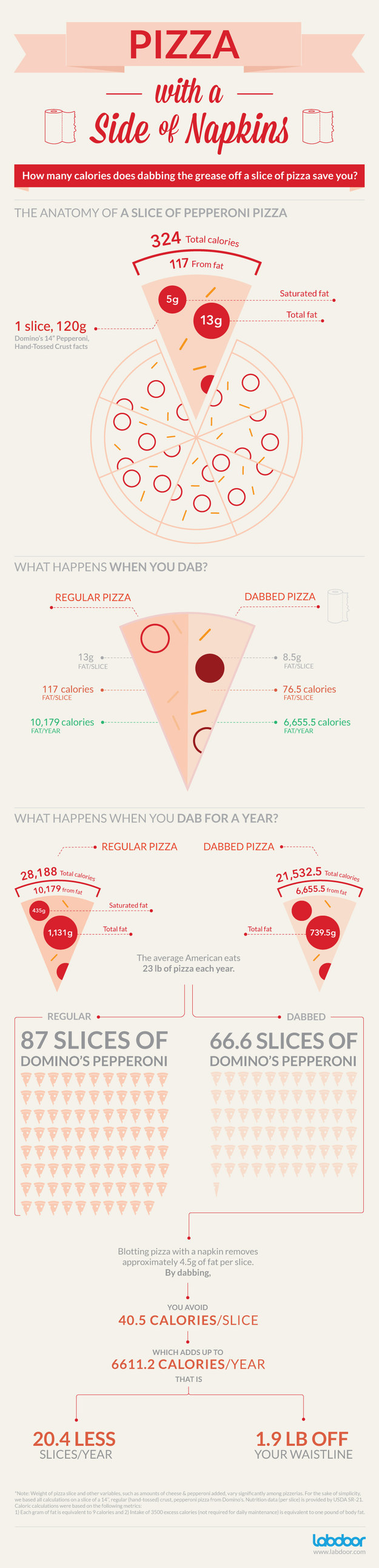 2. Which means, as this infographic shows, that if you dab every slice you eat for a year, you’ll eat 6,600 fewer calories than if you didn’t dab.