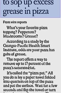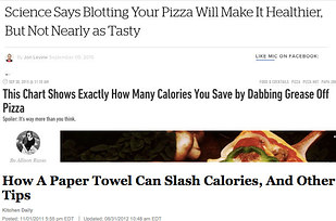 1. Maybe you’ve seen a few articles about how blotting your pizza with a paper towel can eliminate 4.5 grams of fat and 41 calories.