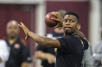 Florida State quarterback Jameis Winston at the NFL football scouting combine in Indianapolis. Julio Cortez / AP