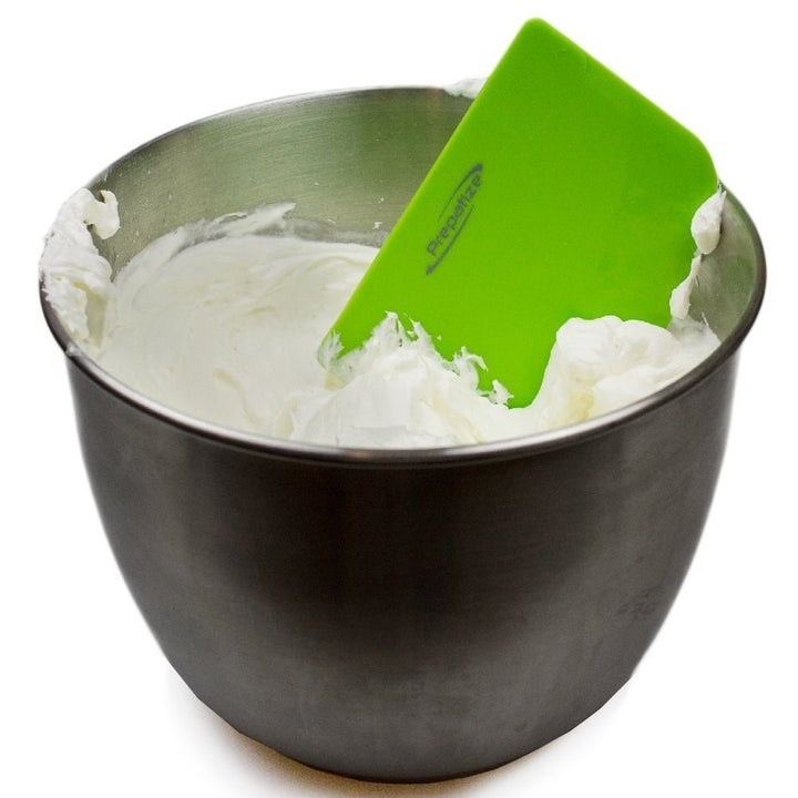 "Other than using it for scraping the sides of the bowl, it can be used for folding batter, using the flat side to cut softer ingredients, picking up chopped ingredients from the chopping board, pushing the contents of a piping bag so I can use all the leftover/extra stuff that is in the bag, and spreading batter on a flat or rectangular pan. I actually prefer this over a spatula when scraping the sides of the bowl, (especially when i'm emptying it out), because you can put more pressure on it as you scrape, scraping most, if not all, of the contents out of the bowl." —kathrynl10