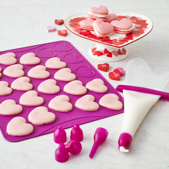 18.A heart-shaped macaron kit that'll allow you to avoid shelling out a few dollars on a single macaron at your local mall kiosk! Now you can make a whole batch of 'em in your pajamas.