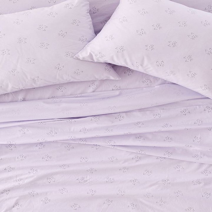 13. A purple cat face sheet set that'll be the purr-fect choice in whisk(er)ing you off into a deep sleep.