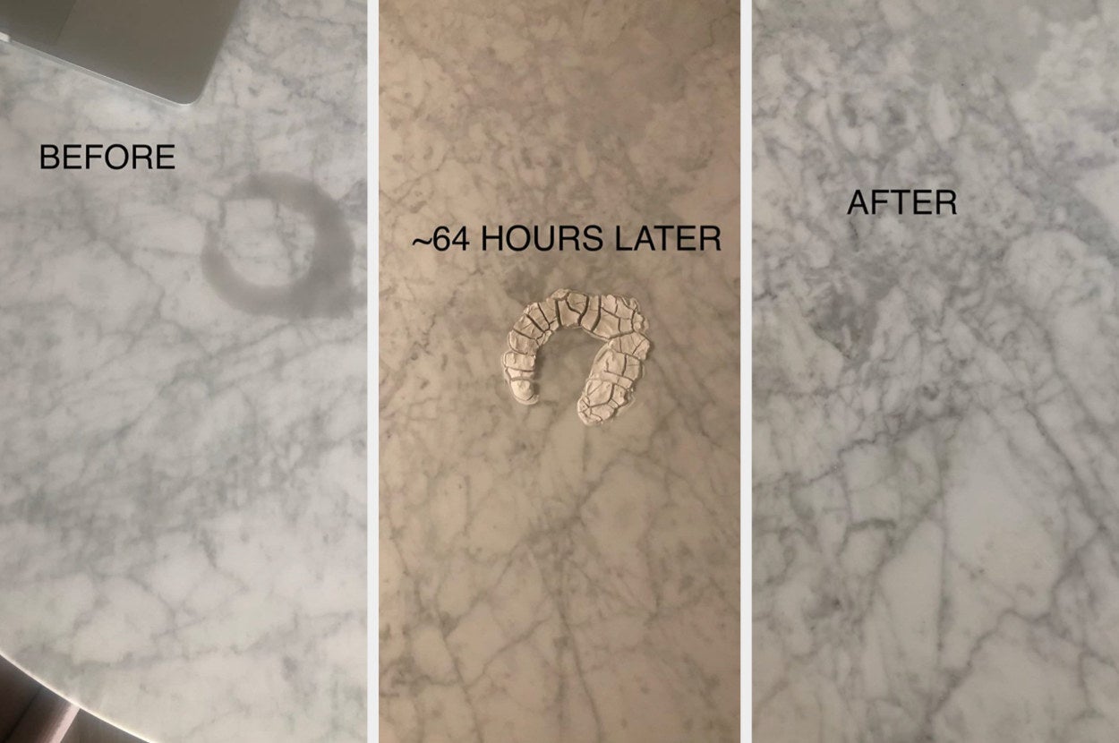 Promising review: "Had an oil stain on my untreated West Elm marble top buffet from a kids toy. I purchased the oil stain remover and crossed my fingers that it would work. Followed the directions, waited 72 hrs to let it dry completely, and then scraped it off with a credit card. It worked perfectly! I couldn't be happier with the results. I highly recommend this product!" —MKDJ