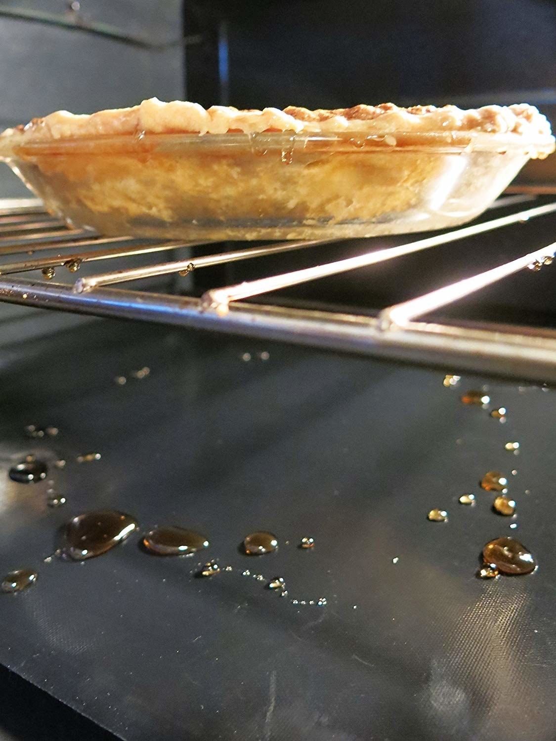 Promising review: "I love these liners. When stuff drips, I can just take it out and clean it in my sink in soapy water or throw it in the dishwasher. Don't have to scrub the bottom of the oven. Just remove the liner carefully. Less need to turn on the self-cleaning feature and endure the smells and smoke that are emitted as part of that process. The worst is usually the floor of the oven and this minimizes the problem." —wifi-er