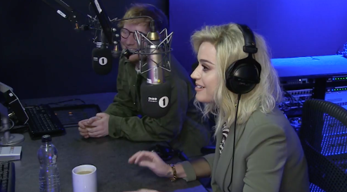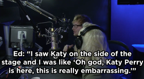 Hours before the show, Katy sat down for an interview with Nick Grimshaw at BBC Radio 1, and everyone's favorite ginger, Ed Sheeran, crashed the party.