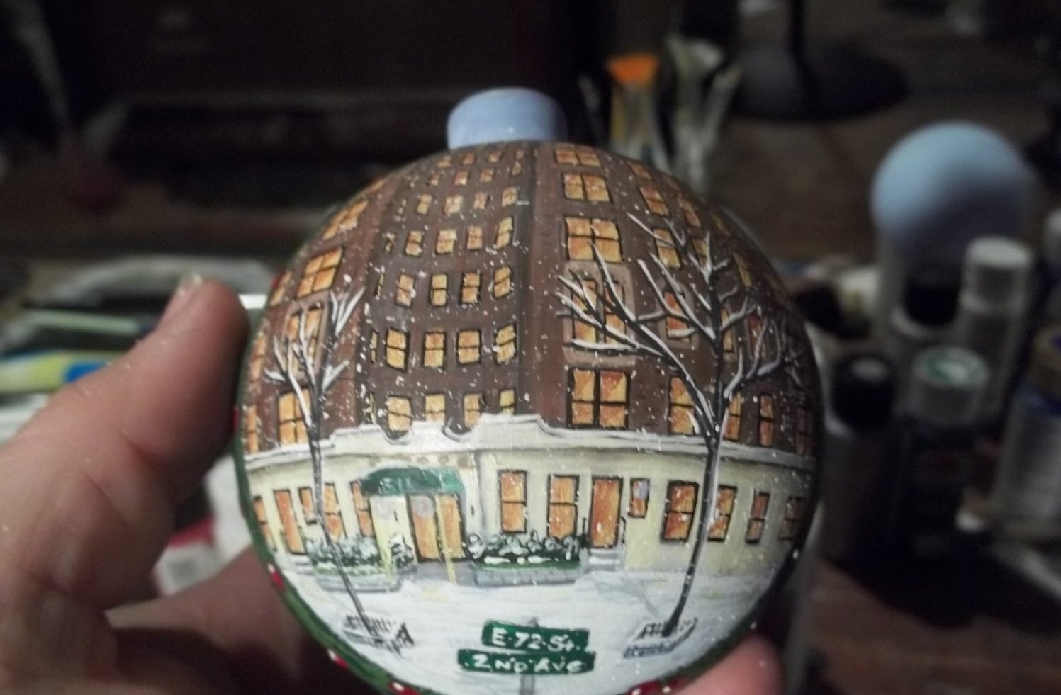 12. A custom hand-painted ornament — a forward-thinking gift to get them now so they'll have a personalized portrait of the exterior of their apartment building ready to hang on their tree come the holidays.