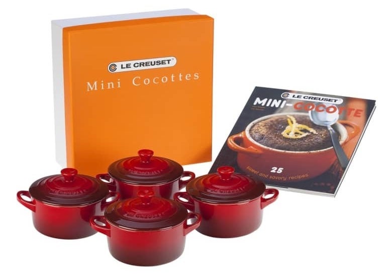 17. A set of four mini cocottes with a cookbook perfect for single-serve meals, which, if they're living relatively on their own, is gonna make cooking so much easier.