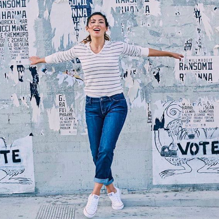 2. Midrise skinny jeans that you can actually do a Bakasana in. What's a Bakasana, you ask? You may know it as the Crow Pose AKA it's a REALLY hard yoga pose. Really, really hard.