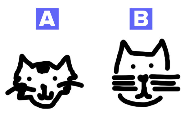 Two people drew doodles of cats. Can you identify the one that was drawn by the OLDER person?