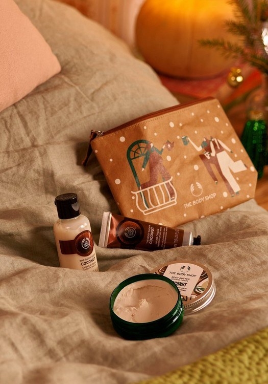 Get the Creamy & Dreamy Coconut Mini Gift Set (left) for $15 and the Glowing British Rose Ultimate Gift Pouch (right) fo $71.