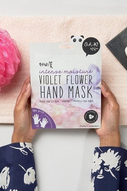 9. Moisturizing violet hand masks to keep those overworked claws of yours baby-butt soft.