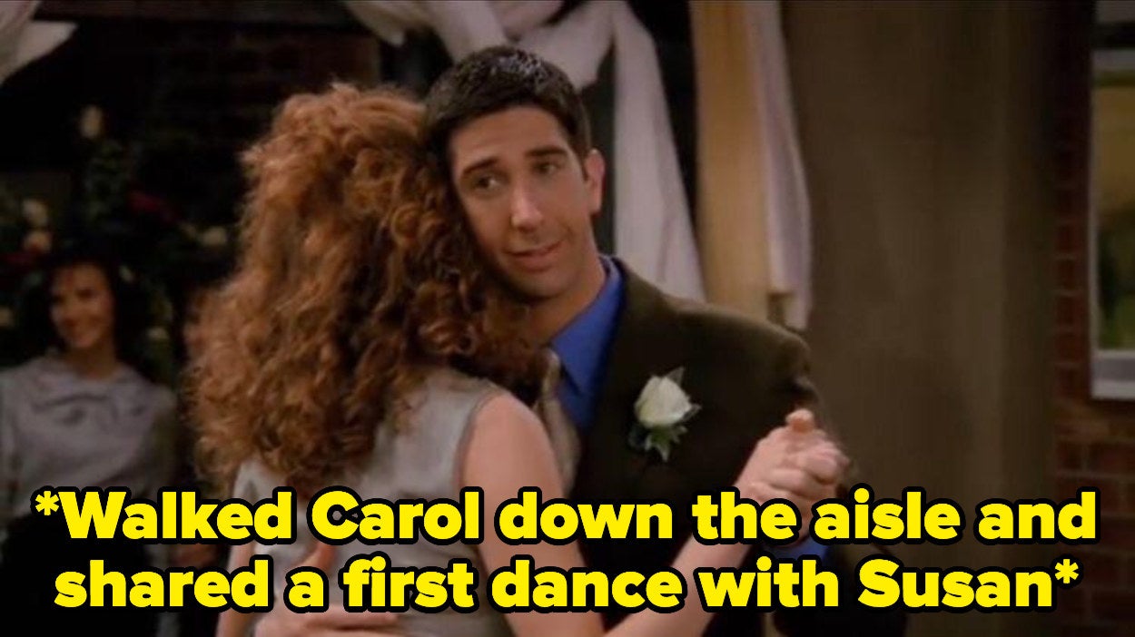 "When Ross walked Carol down the aisle. It needs to be realized that Ross was angry. He felt that Carol cheated on him with Susan. Anybody in his place would be angry at Carol too. Yes, I definitely agree that the show did have some inappropriate homophobic jokes because it seemed OK at that time. But overall, the character of Ross, although problematic, wasn't a homophobe."