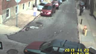 This security cam footage shows an incredibly bold driver forcing their way between cars and a brick wall to get around someone who's double-parked on a narrow road. They don't give up until the neighbors come out to see what the hell is going on.