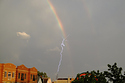 An amazing photo by a RedEye reader shows the iconic tower being struck just as the tornadic storms were ending and as 2 rainbows were forming.