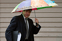 That's one bleepin' awesome way to stay dry on the way to court, ex-guv'nor. Look closely - those are Girl Scout Cookies. Samoas! Thin Mints! Tagalongs! Did he forget where he was going?