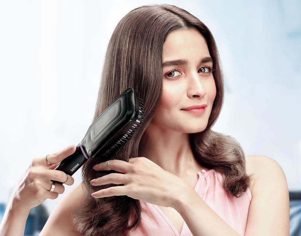 16. The Philips Heated Hair Straightening Brush has a keratin-infused ceramic coating to create shiny, smooth, frizz-free hair. Two temperature settings help minimize heat damage on hair. The broad paddle brush with a triple bristle design gently detangles and straightens with ease while protecting your scalp from heat - ₹2,789