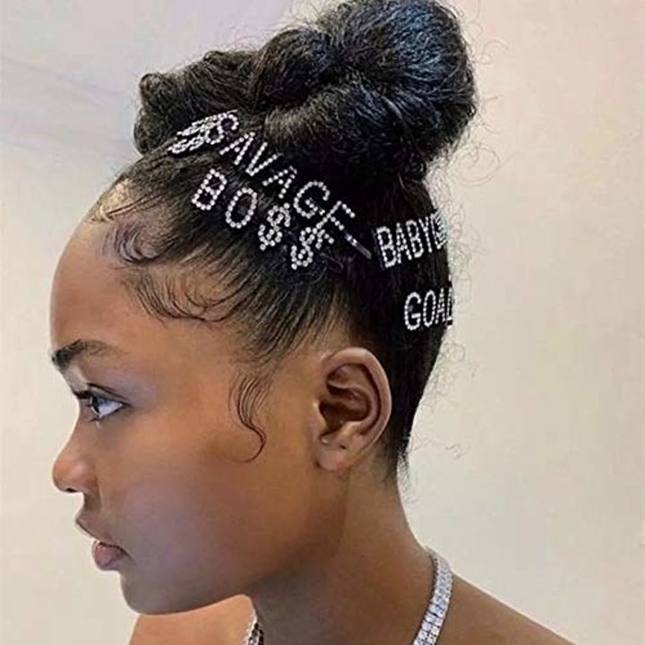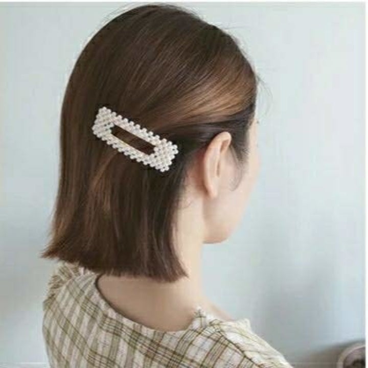 48. These very in-vogue metal and zirconia word hair clips - from ₹229 that are a mood of their own, or these simpler snap-on pearl hair clips.
