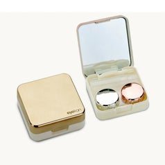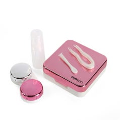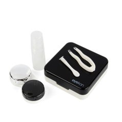 Includes a box with built-in mirror, contact lens case, lens solution bottle, lens tweezers, and lens pick. Portable. Available in black and rose gold.