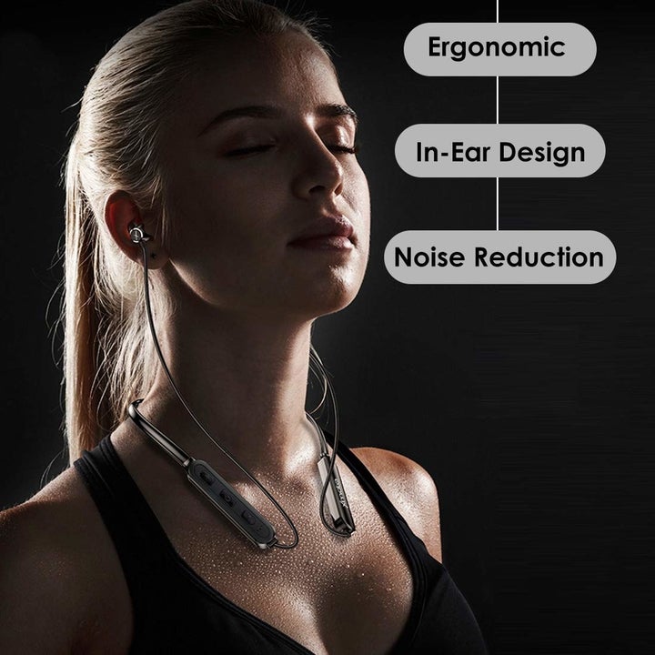 7. You can also opt for these wireless headphones with a neckband that's ideal for an intense workout so don't have to worry about them falling off mid push-up - ₹799 (MRP ₹2000). It has a Bluetooth transmission range of 10 metres. It is also water-resistant and has an in-line remote control for easy control.