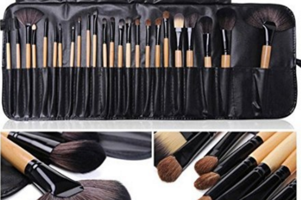 1. This makeup set with 24 brushes of different sizes, and a black leather carry case (₹799).
