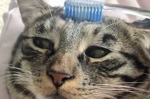 ネコちゃんのおでこを歯ブラシでナデナデ←悶絶級の可愛さ…!