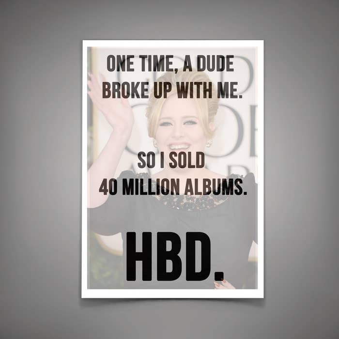 Celebrity·Posted on May 5, 20159 Birthday Cards Adele Should Totally Give To HerselfHBD you diva, you.by Sheridan WatsonBuzzFeed StaffFacebookPinterestTwitterMailLink 1. 2. 3. 4. 5. 6. 7. 8. 9.