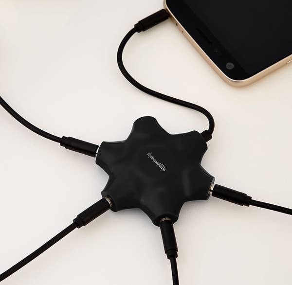 9. This 5-way headphone splitter that will make sure everyone can enjoy the best audio quality and not worry about sharing earphones *shivers* or getting all into someone's personal space – ₹389
