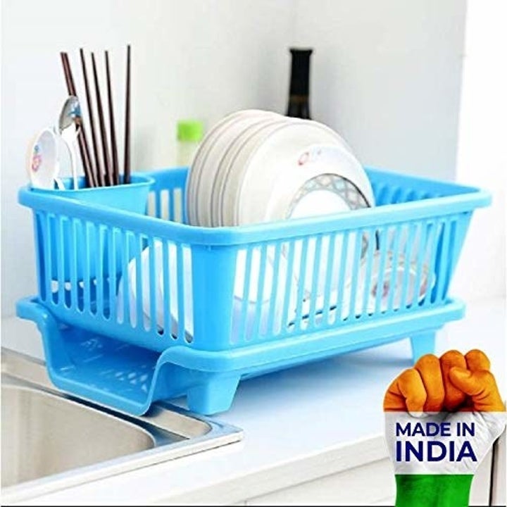 10.A dish drying rack with an outlet that'll let the water drain out so you can store the dishes in the rack after washing them to reduce time and energy spent in waiting for them to dry - ₹379