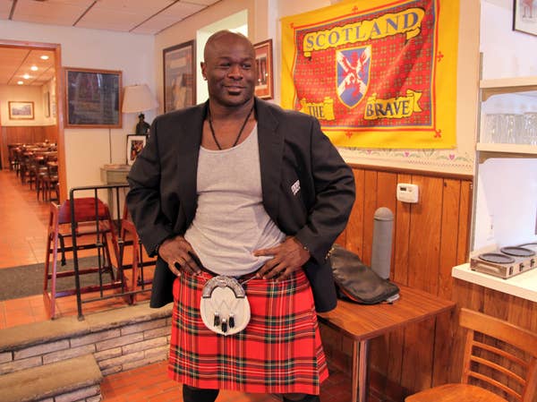 Former NFL player Hugh Douglas looks good in a Scottish Kilt