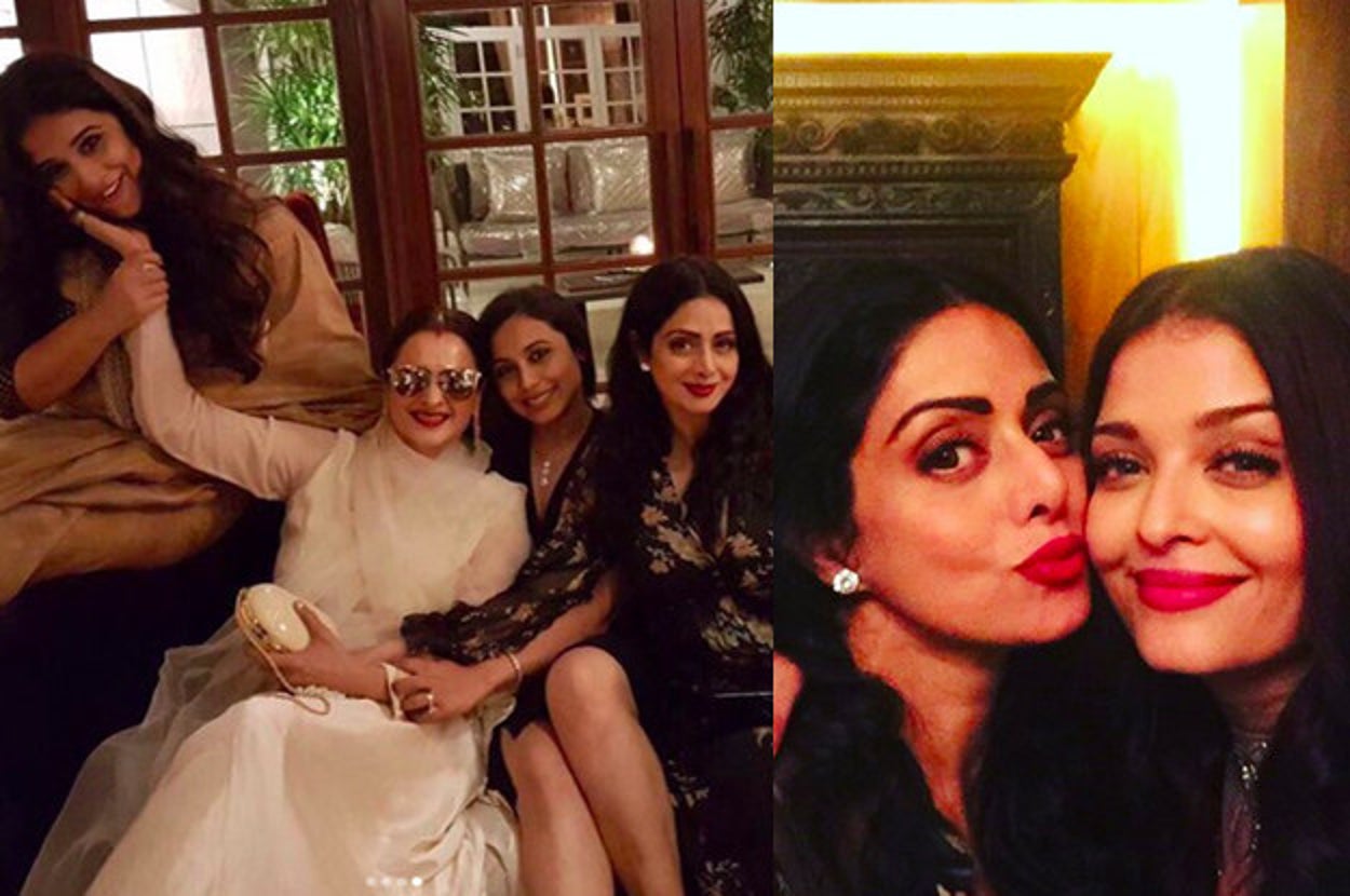Aishwarya Rai Bachchan, Shabana Azmi, Vidya Balan, Rani Mukerji, Rekha, Tina Ambani, and of course, Sridevi gathered around like the gorgeous brigade they are to take some delightfully glorious photos.