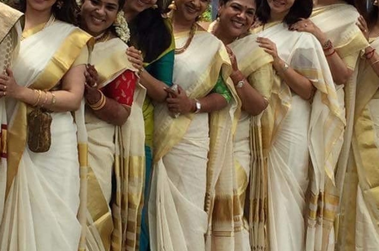 At the wedding ceremony, all the ladies looked phenomenally cute in white and gold pattu sarees.