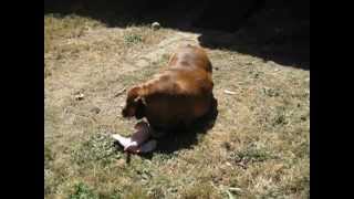 "He is a 5 year old standard dachshund. He is on a special diet to lose the weight and get back to being a happy dog. [His owners] think that he should weigh about 30 to 40 pounds. [They] immediately took him to the vet for blood work and it miraculously came back normal. [They] plan to do swim therapy with him and treadmill work once he starts to lose a little. He will need a dental and may eventually need to have excess skin surgically removed."