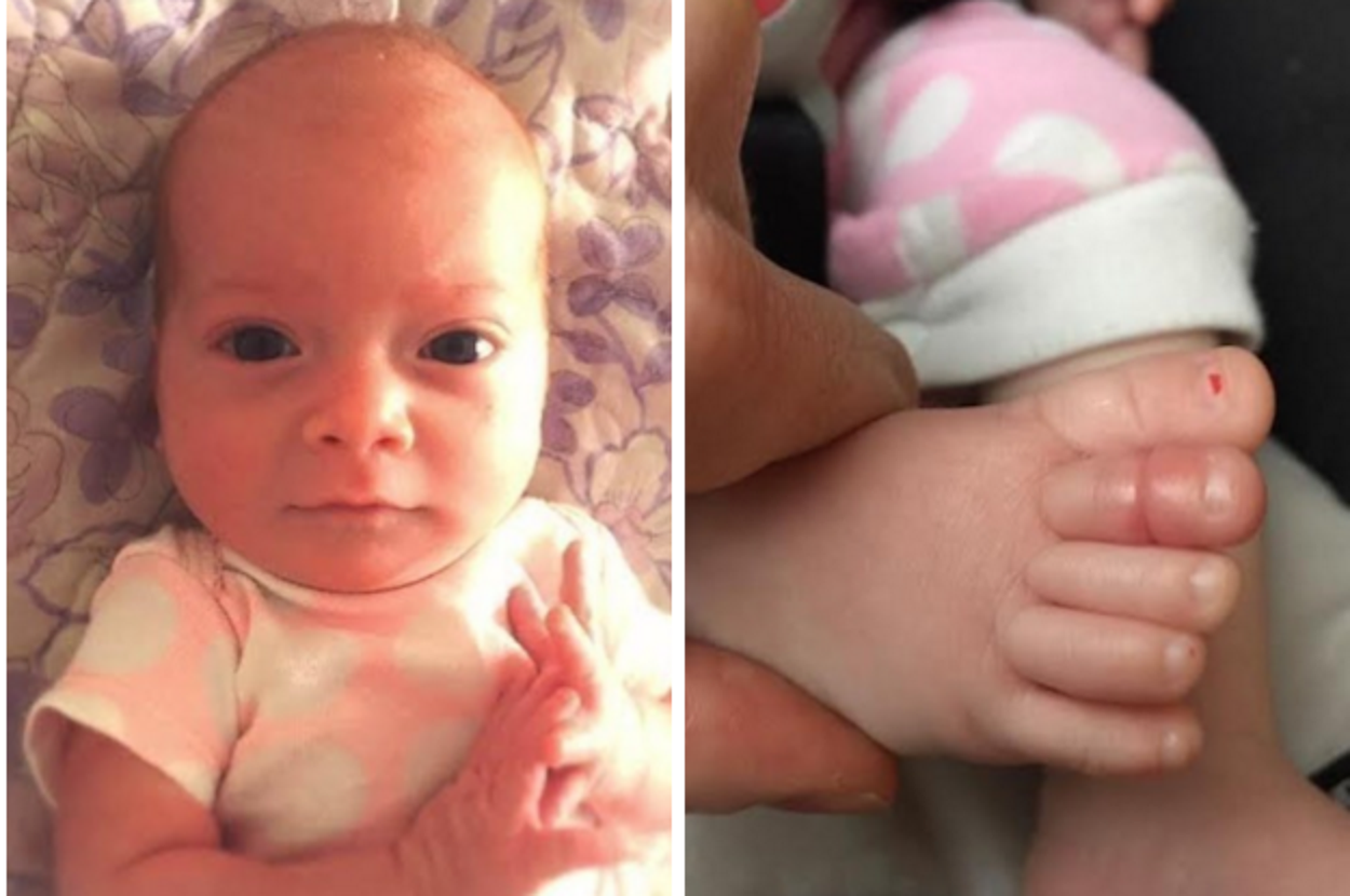 La esposa de Walker se dio cuenta que Molly parecía estar sufriendo de sobrecalentamiento, por lo que le quitó los calcetines. Entonces, vio algo extraño en el dedo de su bebé.