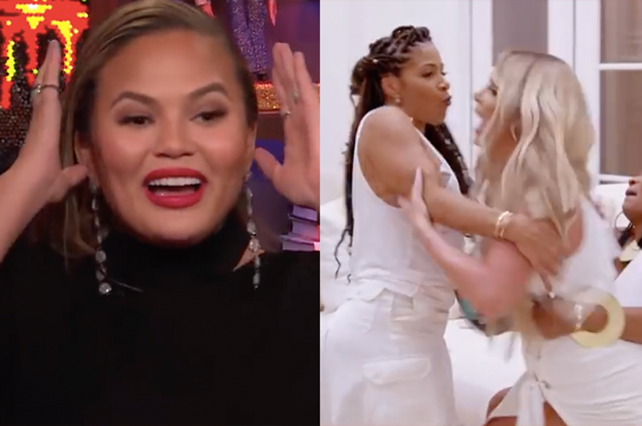 Anyway. Chrissy Teigen LOVES watching all the 'wives fight from the comfort of her couch — but suddenly, she's found herself in the MIDDLE of the drama.