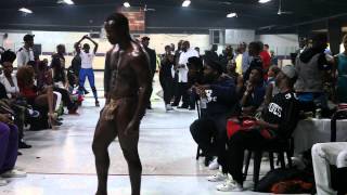 So as a teenager, Johnson presented as straight, becoming "Tiger" the wrestler after he started wearing what he calls his "lucky tiger shirt" to matches. But he also started publicly exploring his identity as a gay man by walking in ballroom drag house balls in Indianapolis. Joining the House of Mizrahi, he was very "butch" and walked a style known as BQ ("Butch Queen") Body. To the unfamiliar, it looks more like a bodybuilding competition than traditional drag. Here's Johnson walking in a ball in St. Louis in 2013, just weeks before his arrest: