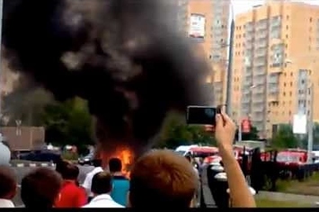 After collision with a car a van's gas cylinder is exploded. No one was injured.