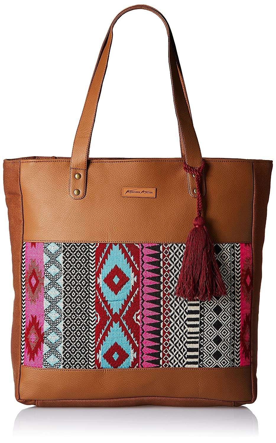 5. If you don’t want to be be too crazy or out there with your bag but still want something that’s not basic, this tan tote with a boho print is just the one for you - ₹499
