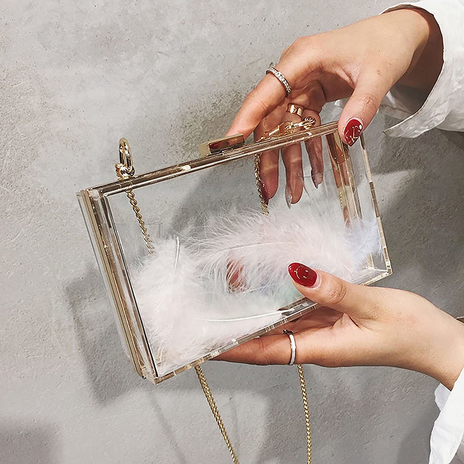 9. This transparent clutch with a chain strap that works well with both a casual or a glam look - ₹4,850
