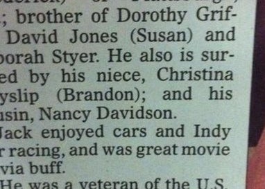 2. This obituary that was short and sweet and to the point: