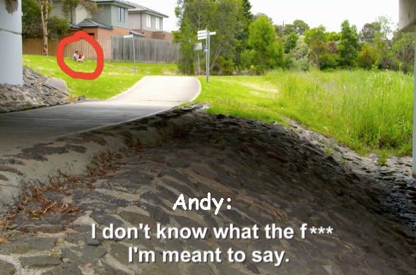 Things later took a turn when they went out for a bike ride and Vanessa stated she needed "more" from Andy. "I need more playfulness, I need more interaction, I need more, more, more," she ranted, to a sullen Andy. "I thought I was doing really well, I don't know what the fuck I'm meant to say," he fired back. The gentle giant was MAD! And the whole exchange was done with the camera filming in some weird tunnel, while Andy and Vanessa were distant specks on the grass. A metaphor perhaps? Or some cameraman not doing his job right and about to get fired? I'll let you decide.