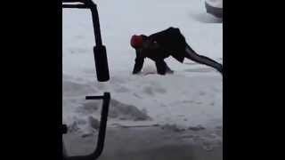 So a video has just surfaced of a guy falling for, like, 9 whole seconds while trying to shovel snow.