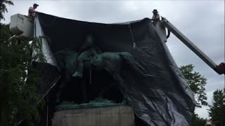 WATCH: Crowd cheers, workers cover Charlottesville confederate statue https://t.co/PFFv3EbWT4
