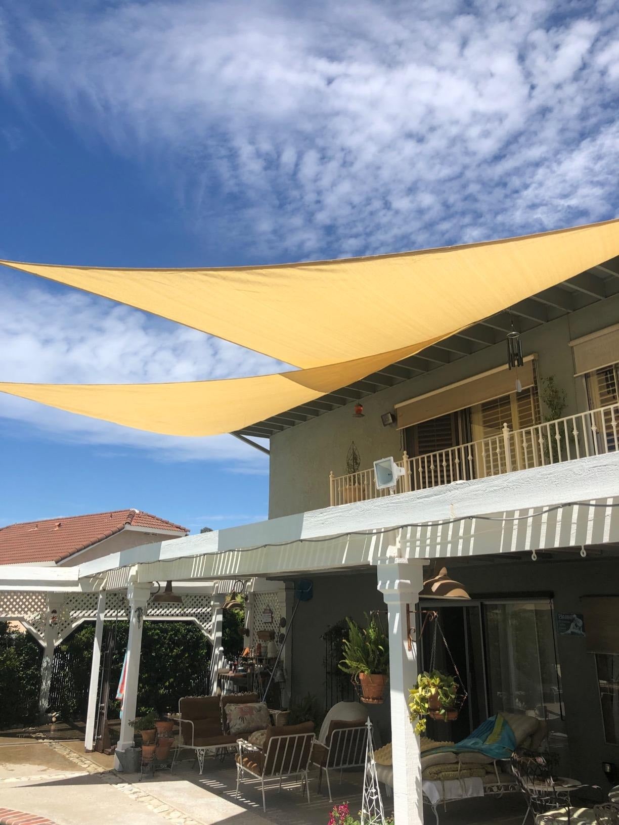 23. A lovely sail canopy for creating a shaded area in your backyard or on your patio. Just because the sun is out doesn't mean you have to suffer!